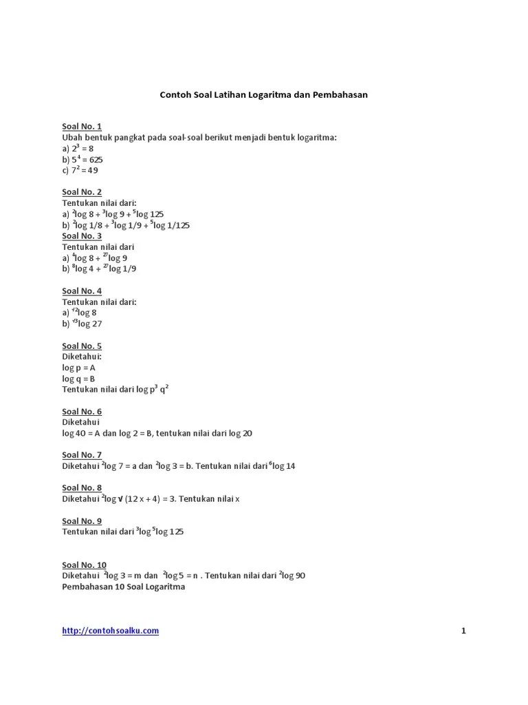 Pelajari ringkasan materi, contoh soal eksponen kelas 10 & logaritma beserta pembahasan & jawaban lengkap dari soal un dan sbmptn. Sifat logaritma lengkap dengan contoh soal. Untuk menjawab soal ini kita dapat . Dari persamaan (i) dan (ii), diperoleh : Dengan merasionalkan penyebut, bentuk sederhana dari adalah … a.